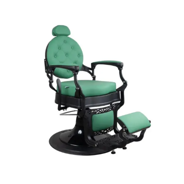 Barberstoel met Zwart Mat Frame en Groene Bekleding: Creëer een stijlvolle en professionele sfeer in uw salon met deze barberstoel, die comfort en duurzaamheid combineert met een modern design. Het zwarte matte frame en de opvallende groene bekleding maken deze stoel een eigentijdse keuze voor elke barbershop.
